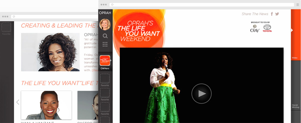 First, we connected hundreds of thousands of Oprah fans by adding in social media, a move that automatically cultivated activity between the brand and its following. Design and development proved to be a balancing act, and we eventually found the perfect combination of modern elements and the iconic Oprah look.