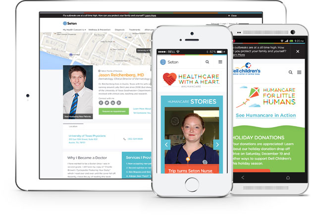 We quickly realized Seton would require much more than a Band-Aid. In fact, this project seemed to be about as big as the healthcare system itself. Each of Seton’s different locations had their own individual website, so fluidity and ease of use were pretty much nonexistent. We dove in, creating one giant network for all of Seton hospitals and clinics. We then went on to create brand fluidity across all Seton collateral, including: promotional material; sub-websites; mobile apps; digital and traditional print media assets; internal and external communication pieces and complete social media assets.